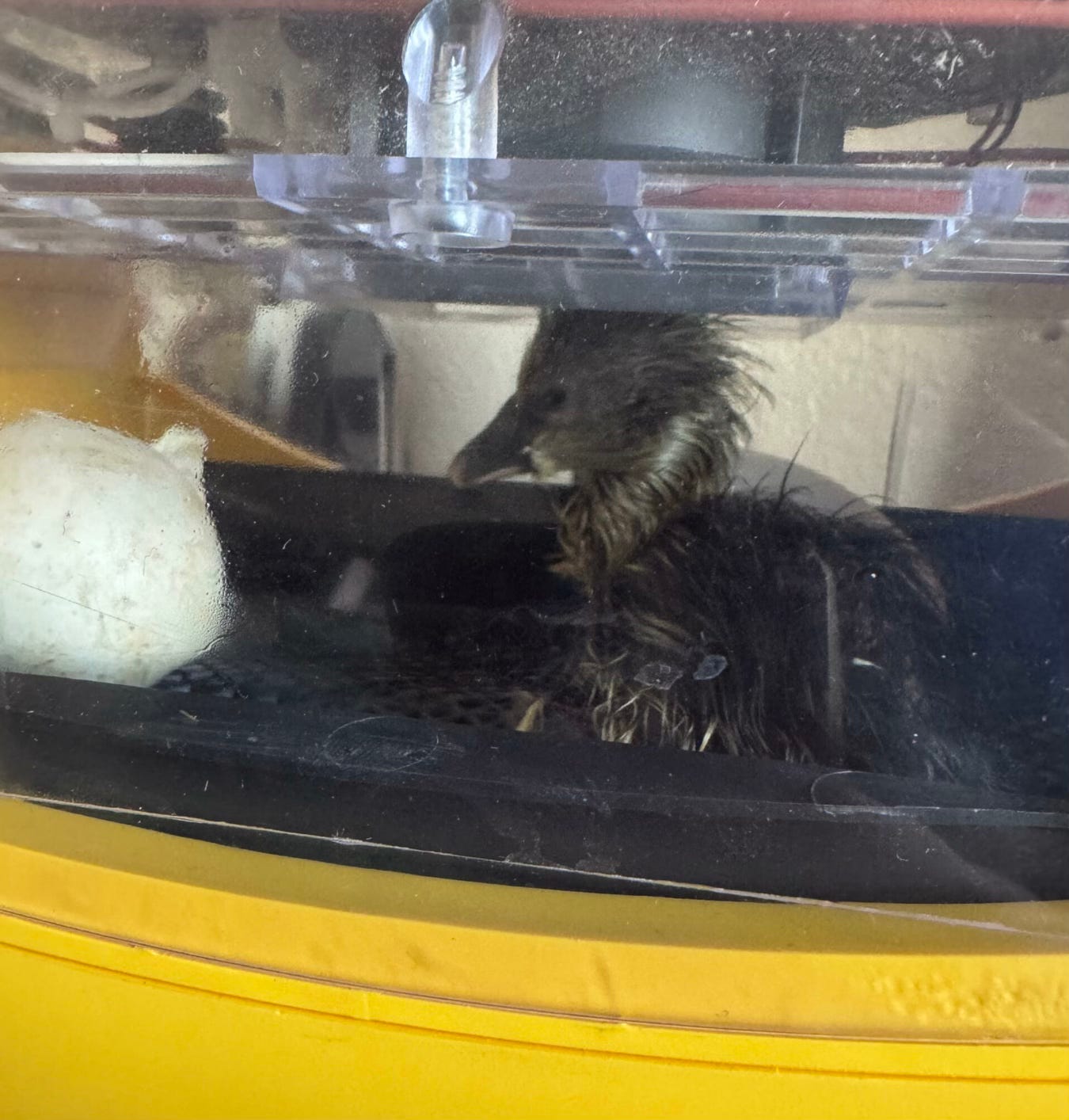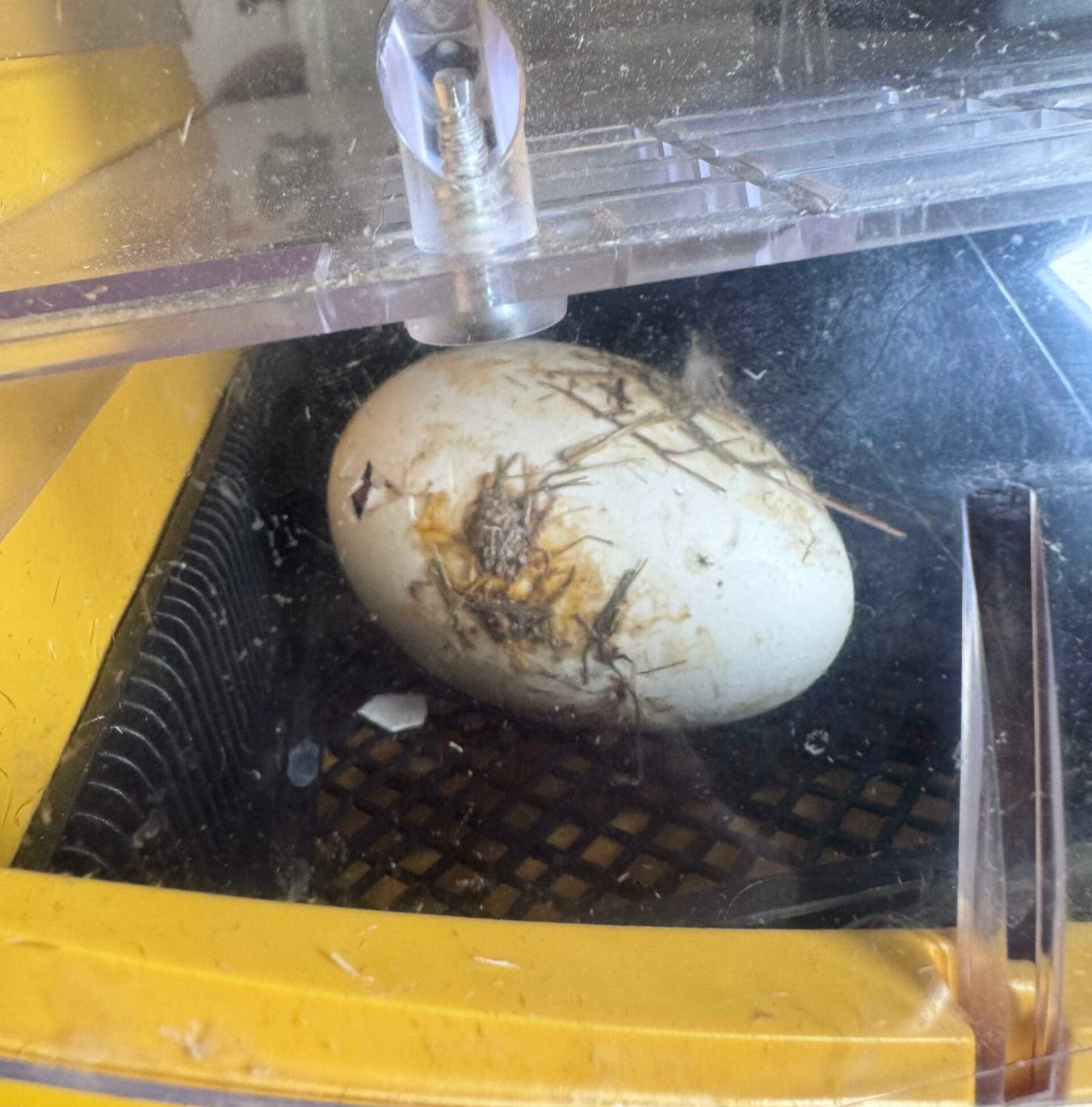 Long story short— both eggs hatched, despite my initial pessimism. We ended up helping the first egg after about 36 hours. Our incubator does a poor job of maintaining proper humidity and the gosling needed help working through the leathery membrane. But I’m glad we waited, as jumping in too early would have been disastrous (even though we were very, very tempted).